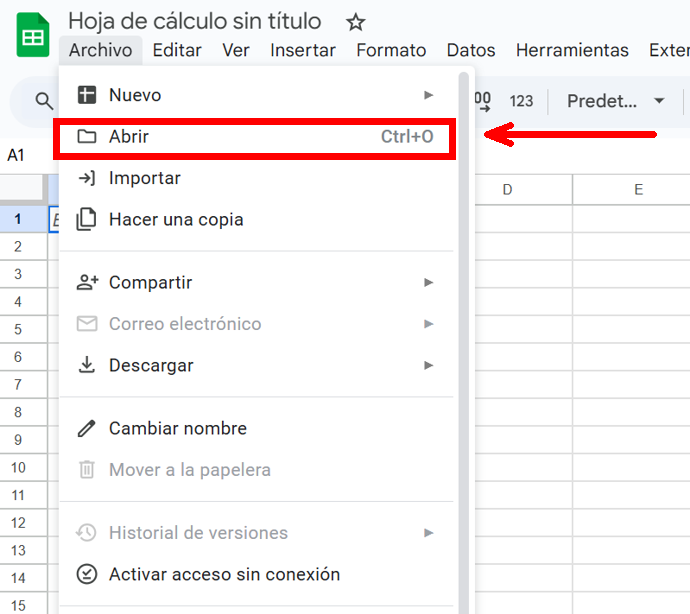 Selecciona Archivo > Abrir > Subir > Examinar, luego sube el archivo